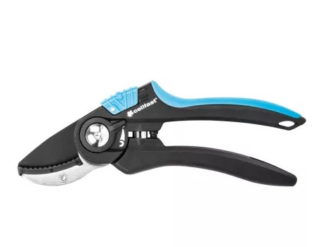 - ergonomikus, egykezes rávágó metszőolló, külön szabályozással, amely lehetővé teszi a nyélnyitás beállítását az ágak méretéhez és a felhasználó kezéhez